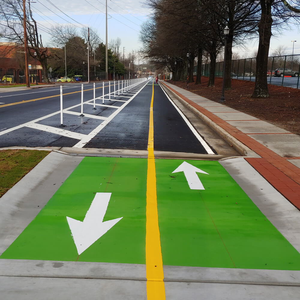 The Doug Davis Drive Road Diet/Bicycle Path Project included 0.32 miles of pavement milling and resurfacing, curb and gutter, new concrete sidewalk, pavement striping, and signage on Doug Davis Drive (from Virginia Ave to Atlanta Ave). The improvements reduced the number of travel lanes to accommodate the addition of a bicycle path and pedestrian accommodations.