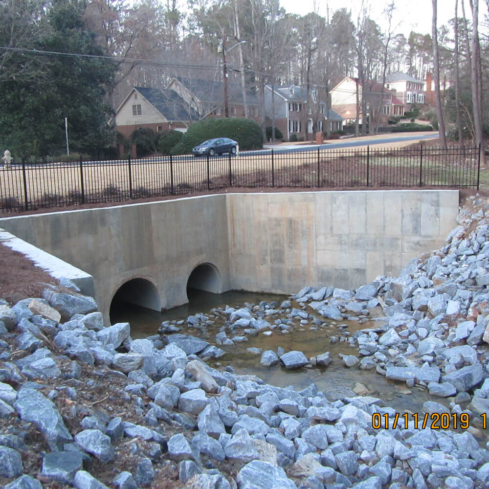 Emergency culvert replacement on a residential street after a catastrophic failure that washed out the road. Performed HEC-RAS modeling of the new culvert pipes which were sized to be 2 - 66" Pipes and 1 - 84" Pipe. Value engineering reduced cost and impacts to adjacent residences.