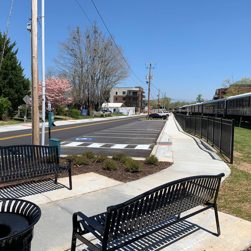 The Historic Downtown Blue Ridge Streetscape included approximately 1,200 linear feet of pedestrian and other roadway improvements along West Main Street from 250’ northeast of the Depot Street to Mountain Street. The improvements include new sidewalks, hardscape and landscaping, curb & gutter, ADA-accessible curb ramps, parking reconfiguration, and pavement milling and resurfacing.