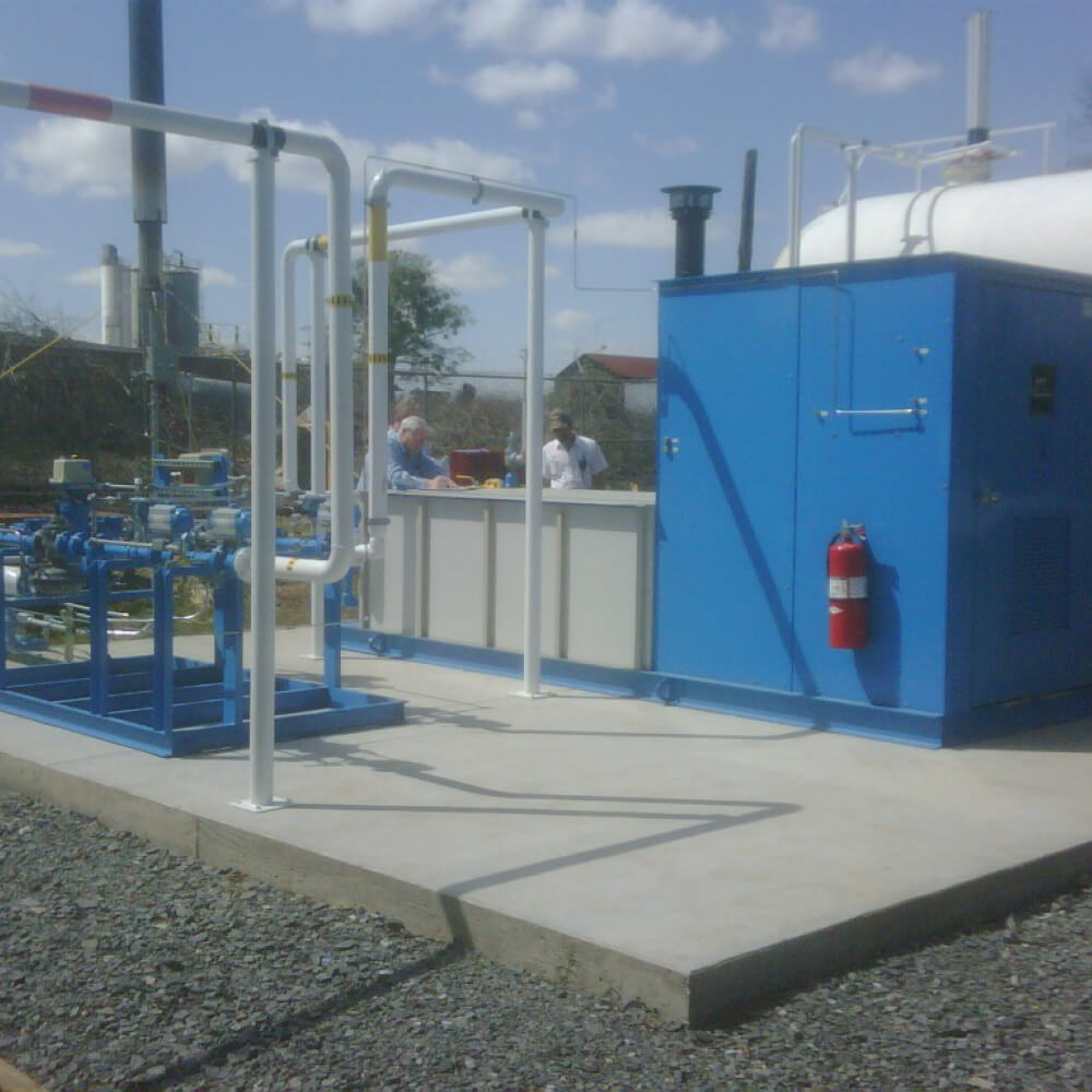 Design of major improvements to an old 100 MCFH propane-air peak-shaving plant, including installation of new equipment and piping and renovation of the existing facility. The plant components being replaced include the vaporizer, air compressors, air receiver, oil and water separator, air filters, propane-air mixer, valves, piping, supports, mechanical and electrical systems, site drainage, and all other appurtenances.