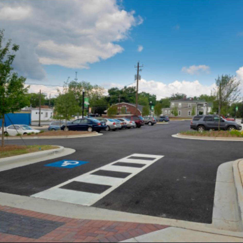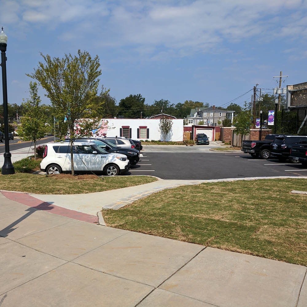 Upgrades to parking, streetscape improvements, pedestrian access and connections, dumpster enclosures, landscape and hardscape, and installation of a Green Screen to soften the look of this urban space.